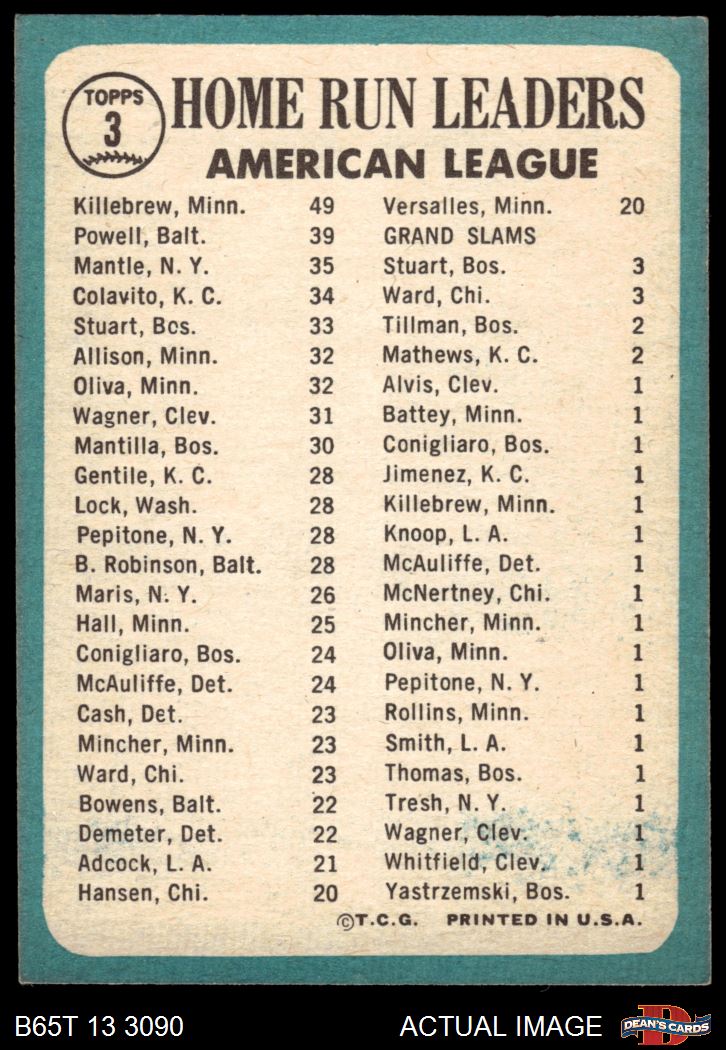 1965 Topps #3 - Mickey Mantle / Harmon Killebrew / Boog Powell AL HR Leaders 5 - EX