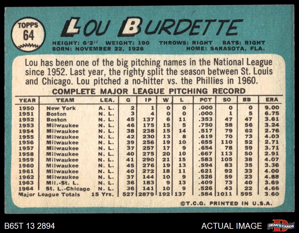 1965 Topps #64 Lew Burdette 6 - EX/MT