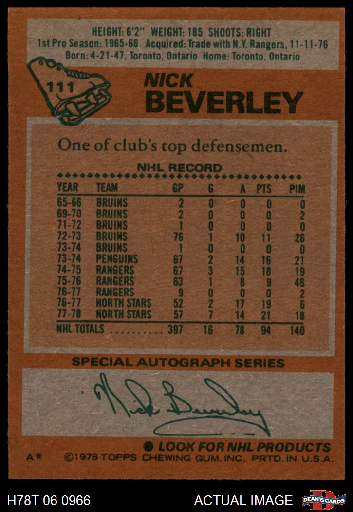 1978 Topps #111 Nick Beverley 7 - NM