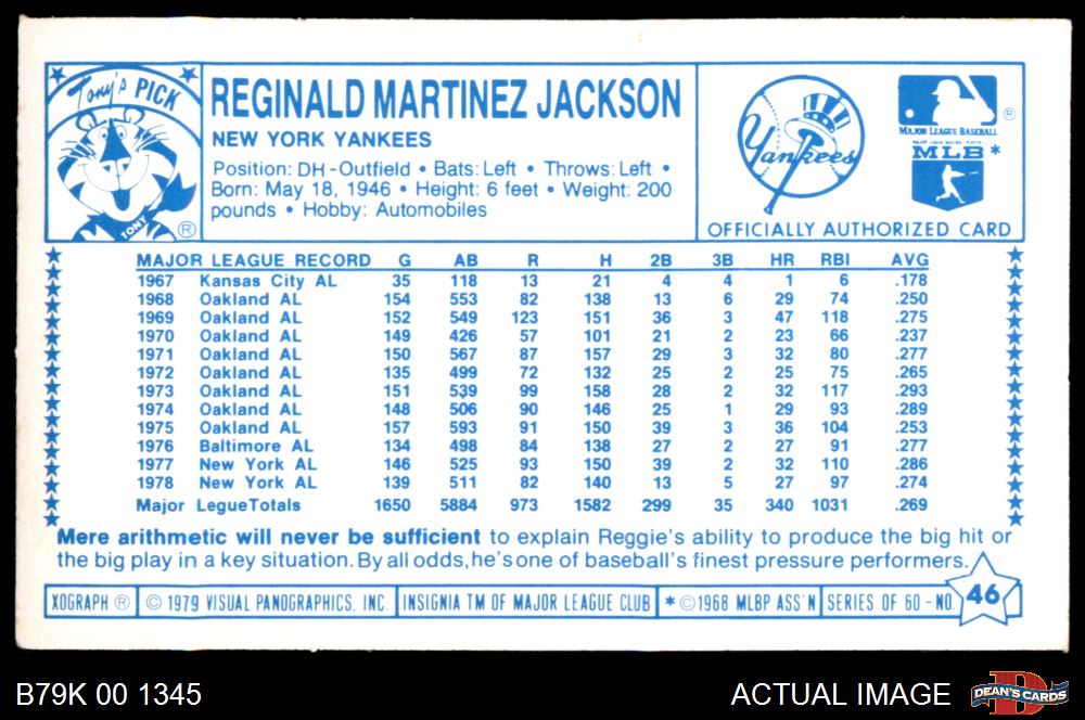 1979 Kellogg's #46 Reggie Jackson 7 - NM