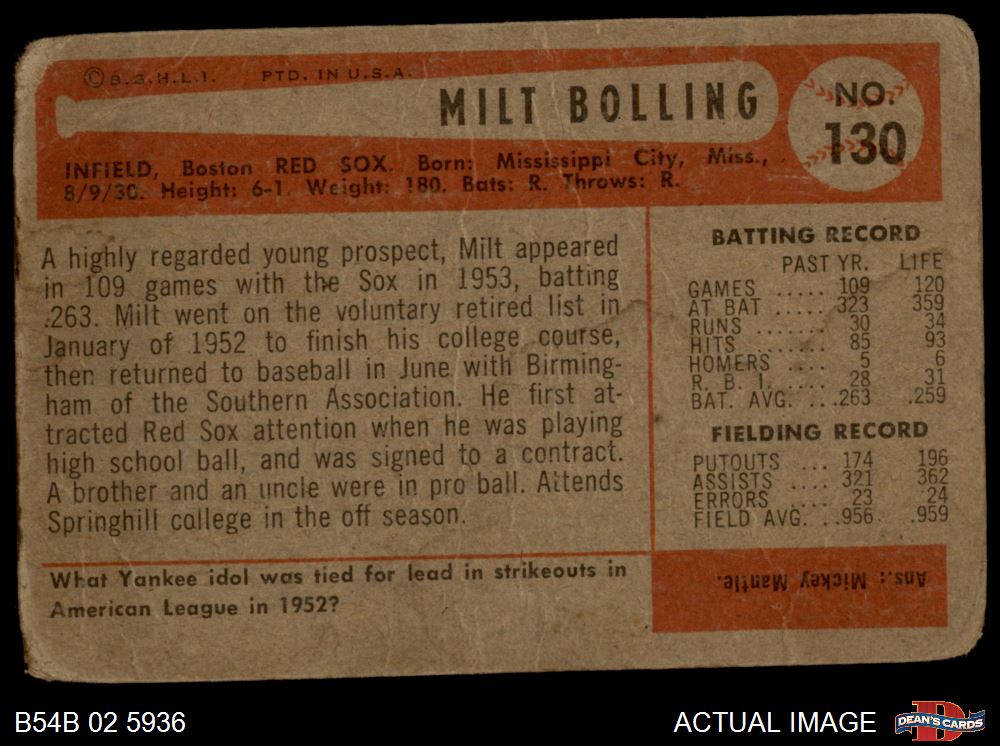 1954 Bowman #130 Milt Bolling 1 - POOR
