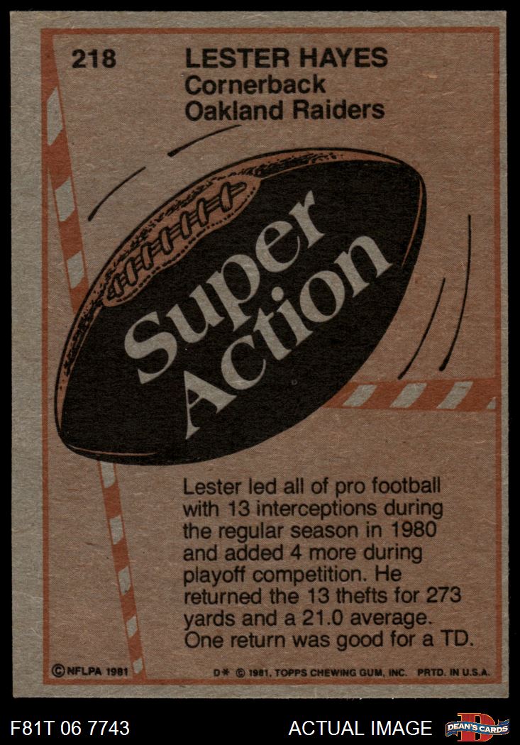 1981 Topps #218 - Lester Hayes Super Action 4 - VG/EX