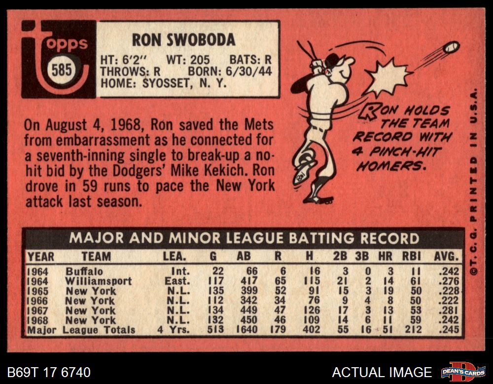 1969 Topps #585 Ron Swoboda