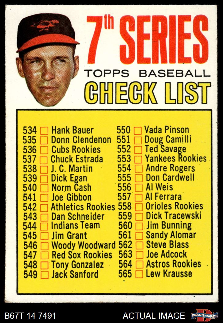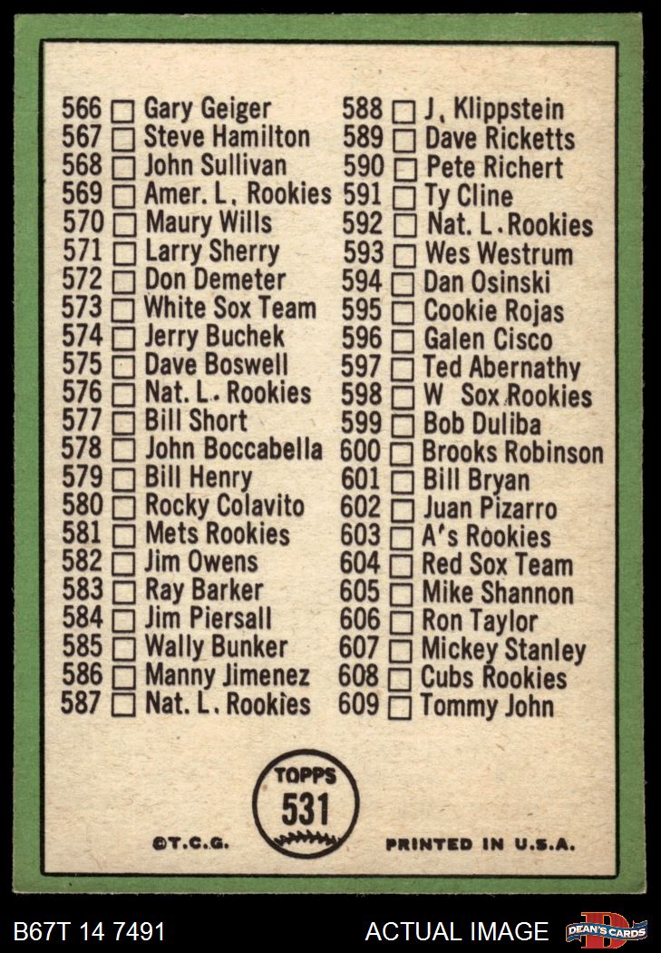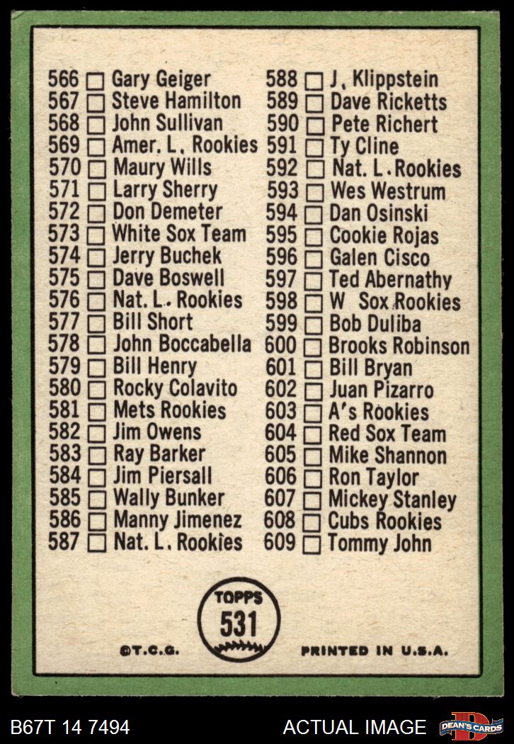 1967 Topps #531 - Brooks Robinson Checklist 7 3 - VG