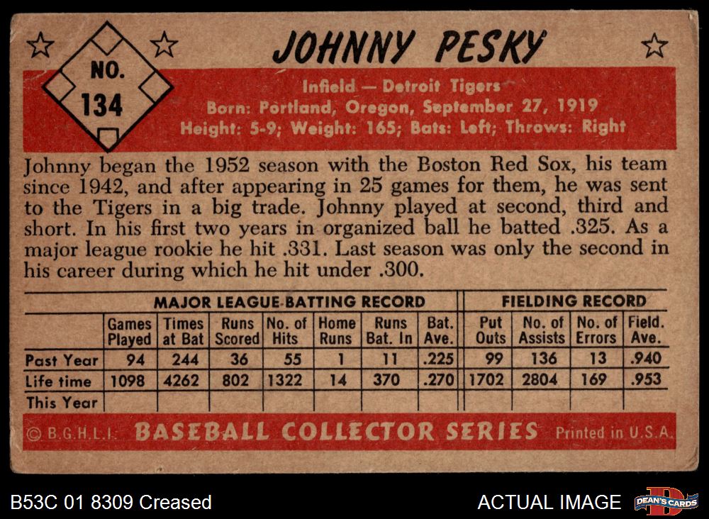1953 Bowman #134 Johnny Pesky 2 - GOOD