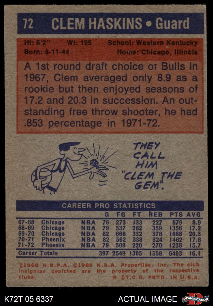 1972 Topps #72 Clem Haskins 4 - VG/EX