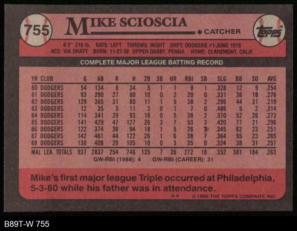 1989 Topps #755 Mike Scioscia