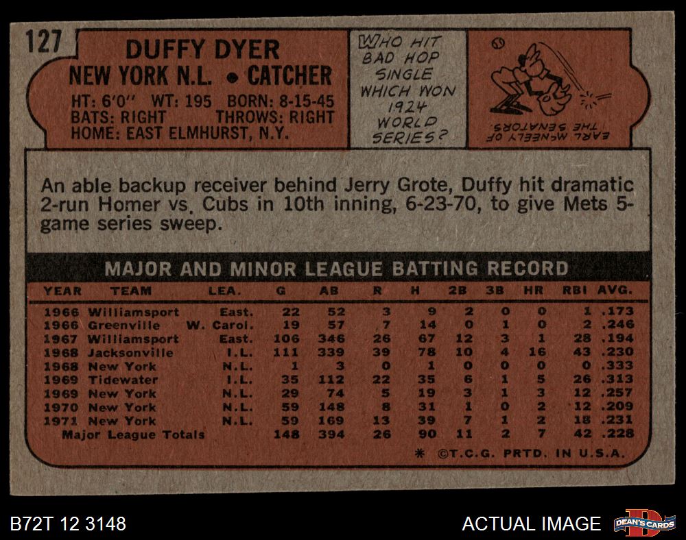 1972 Topps #127 Duffy Dyer 4 - VG/EX
