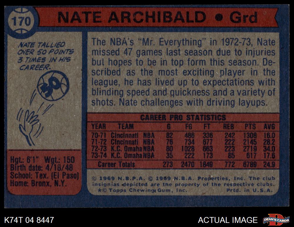 1974 Topps #170 Nate Archibald