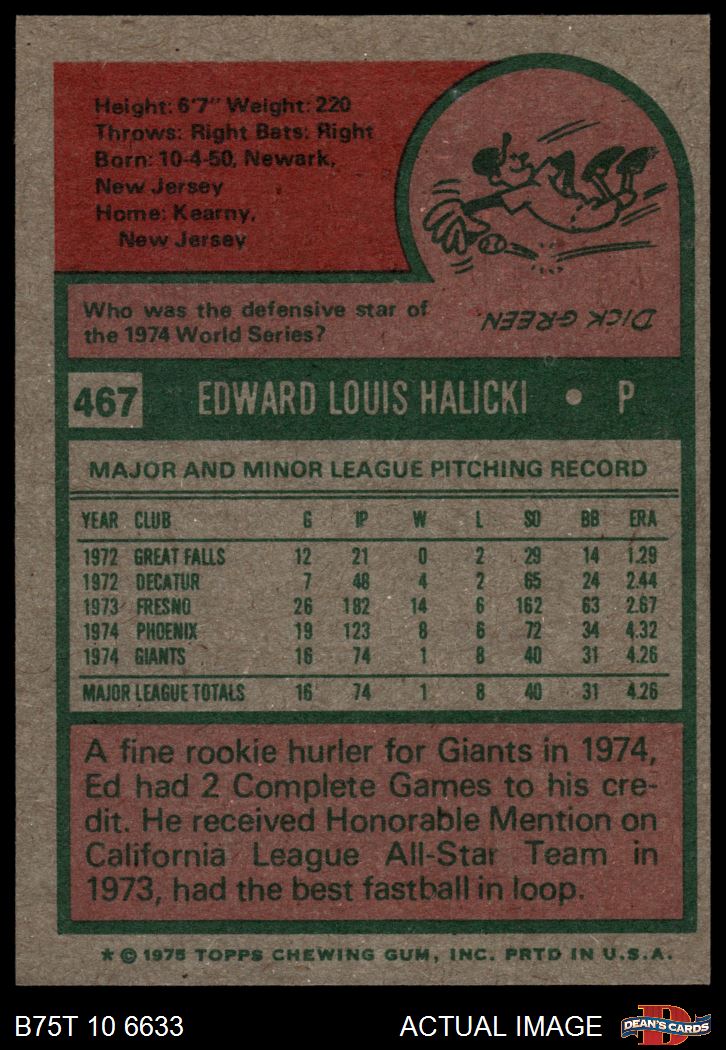 1975 Topps #467 Ed Halicki 5 - EX