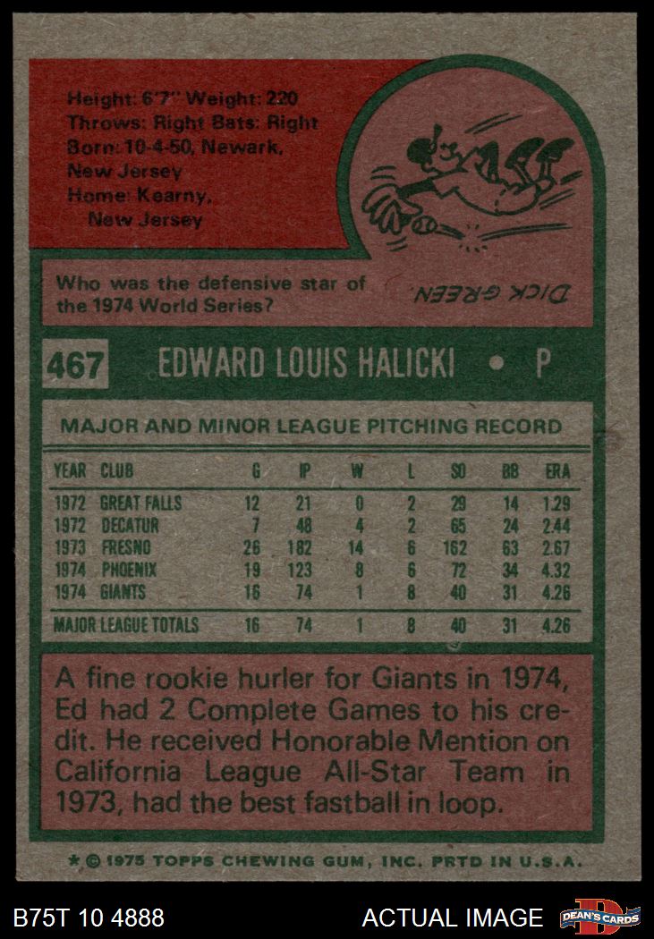 1975 Topps #467 Ed Halicki 7 - NM