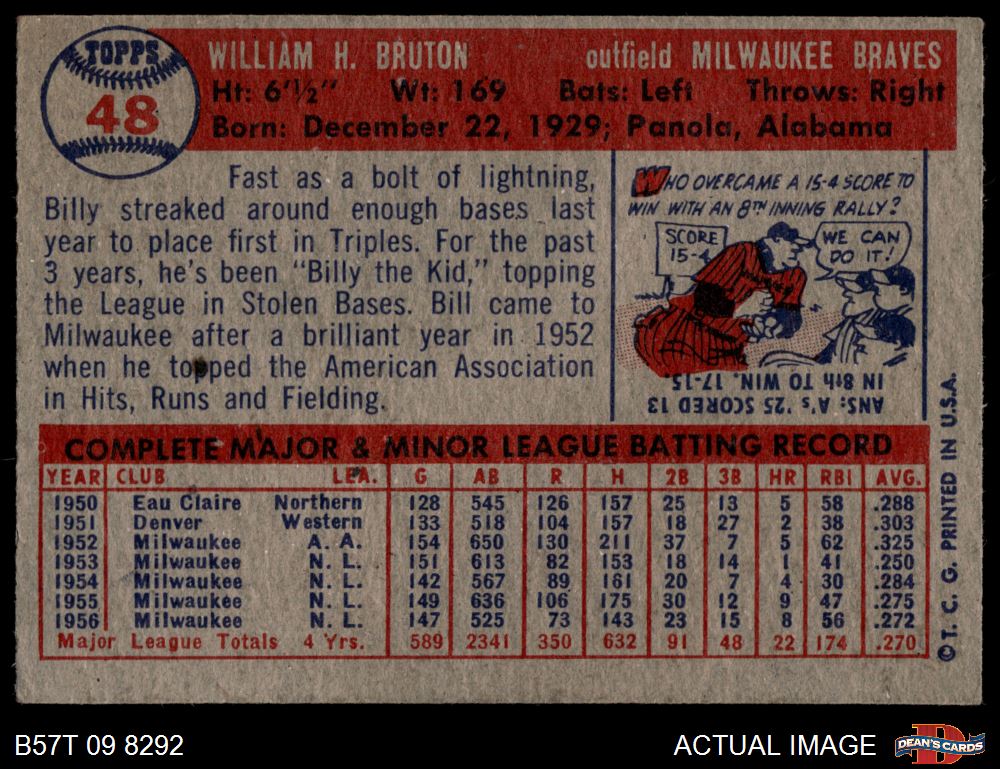 1957 Topps #48 Billy Bruton 2 - GOOD