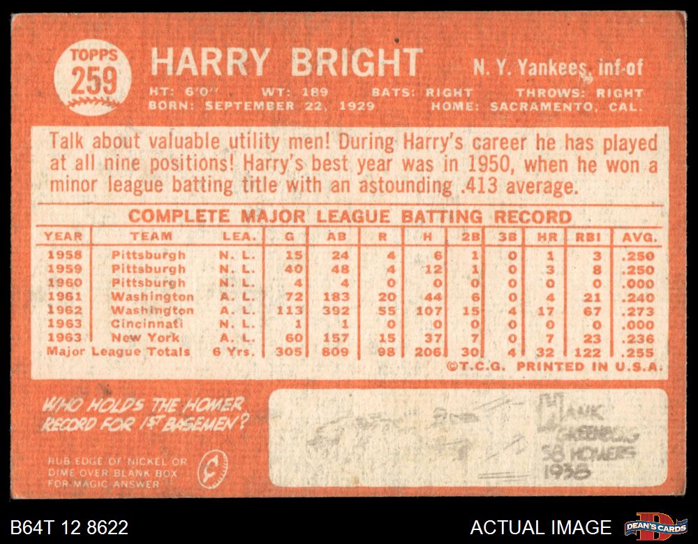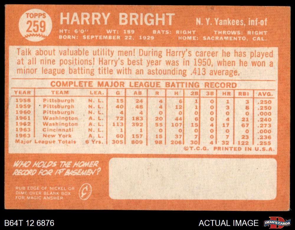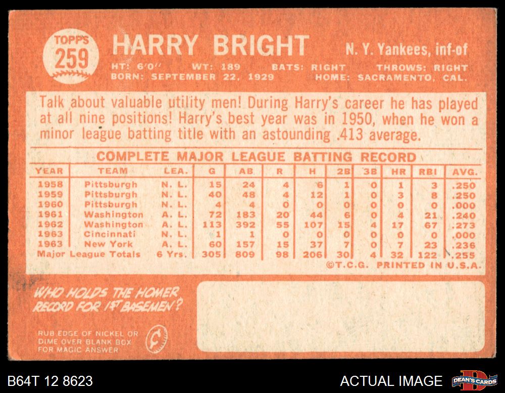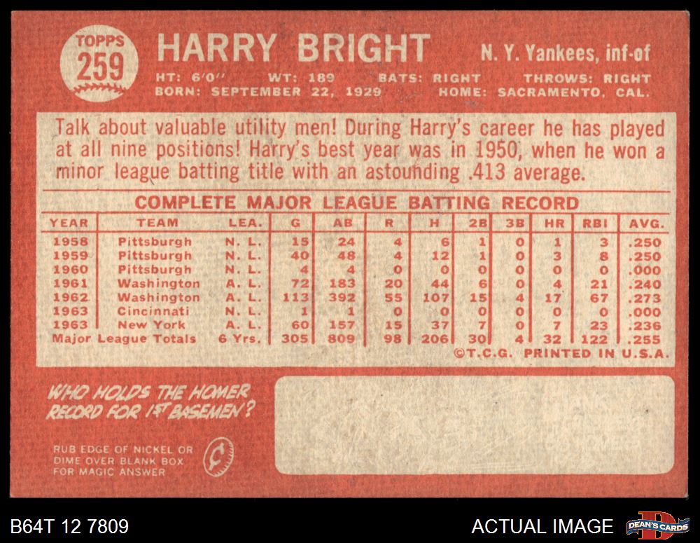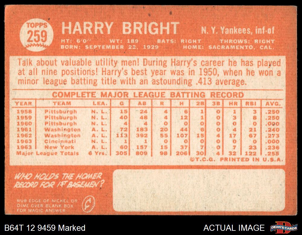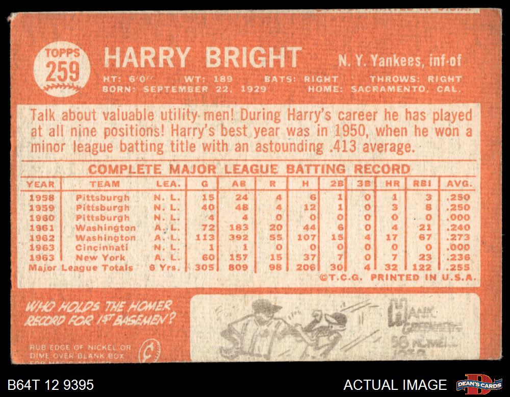 1964 Topps #259 Harry Bright