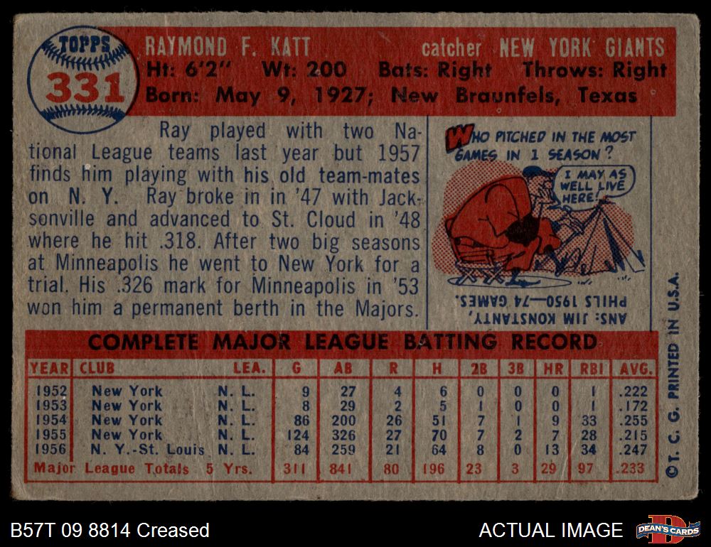 1957 Topps #331 Ray Katt 1.5 - FAIR