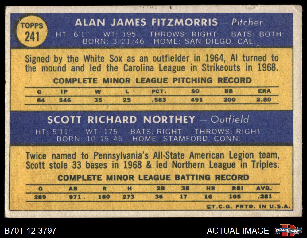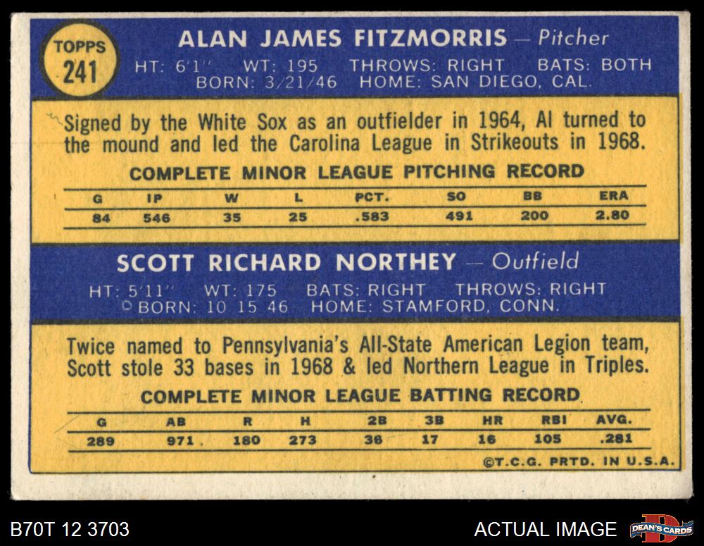 1970 Topps #241 - Al Fitzmorris / Scott Northey Royals Rookies 4 - VG/EX