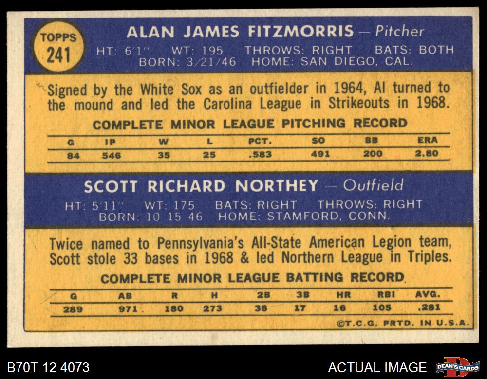 1970 Topps #241 - Al Fitzmorris / Scott Northey Royals Rookies 6 - EX/MT