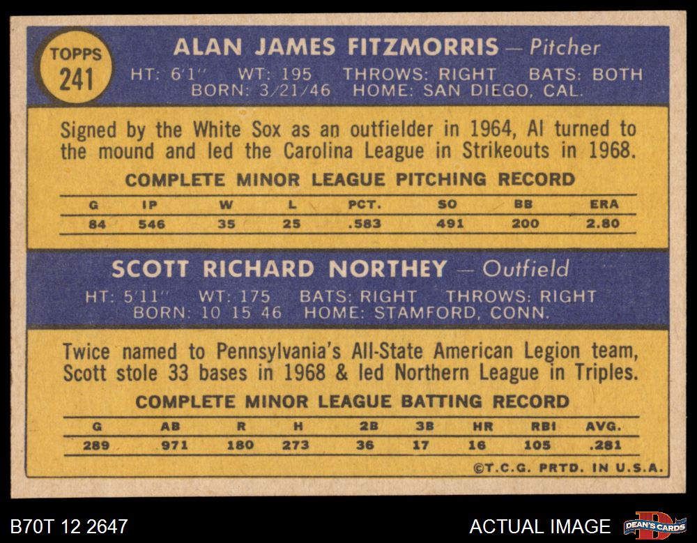 1970 Topps #241 - Al Fitzmorris / Scott Northey Royals Rookies 7 - NM