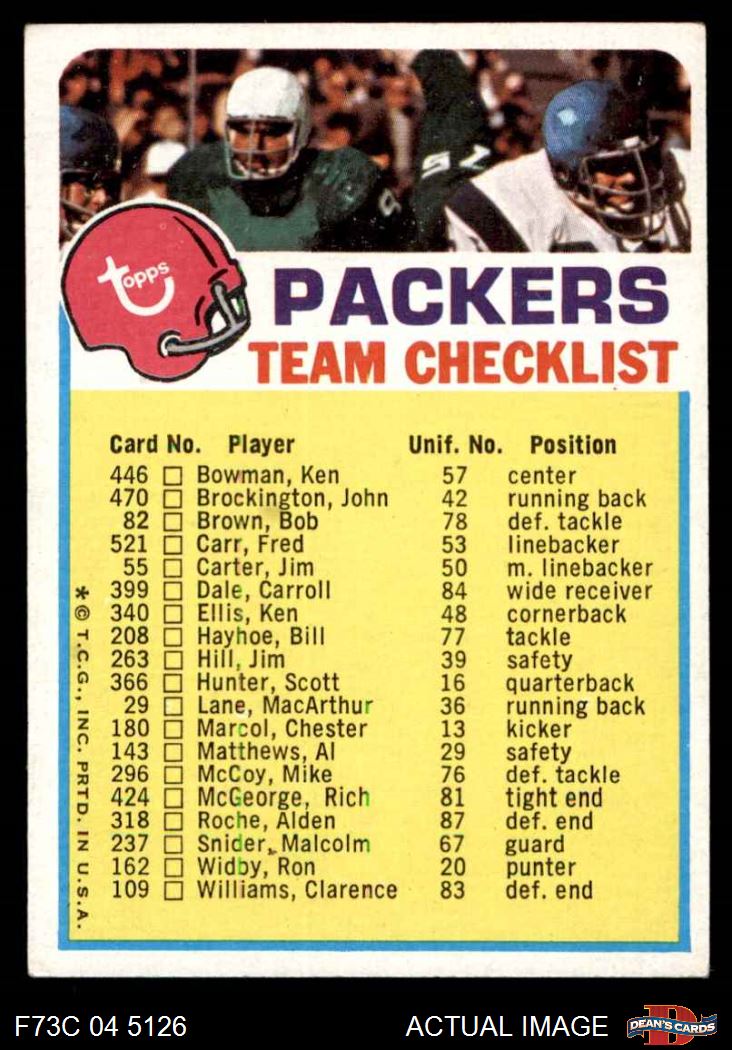 1973 Topps Football Cards (11,994 available)1973 Topps Checklist Packers (55 available)