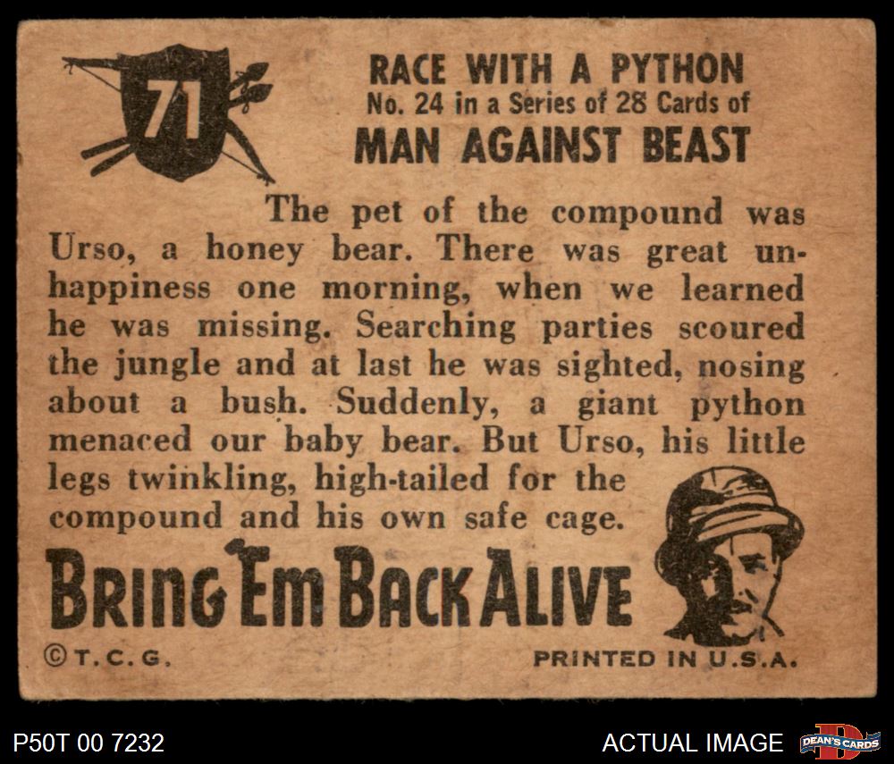 1950 Topps Bring Em Back Alive #71 Race With Python