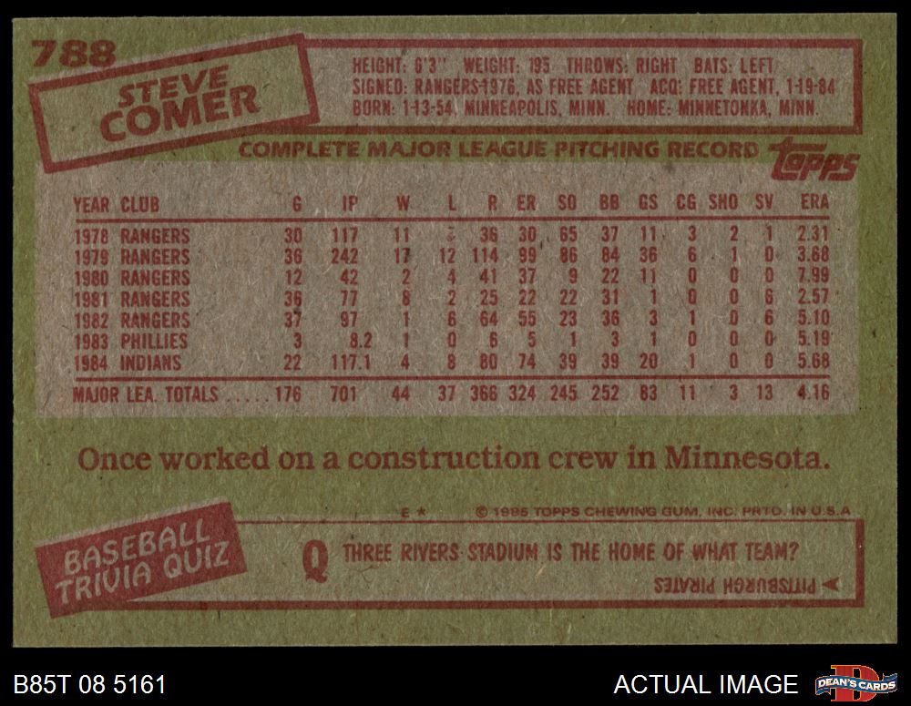 1985 Topps #788 Steve Comer 8.5 - NM/MT+