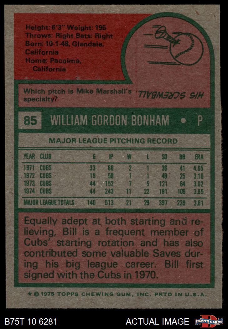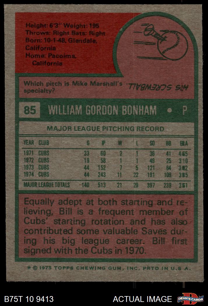 1975 Topps #85 Bill Bonham 5 - EX