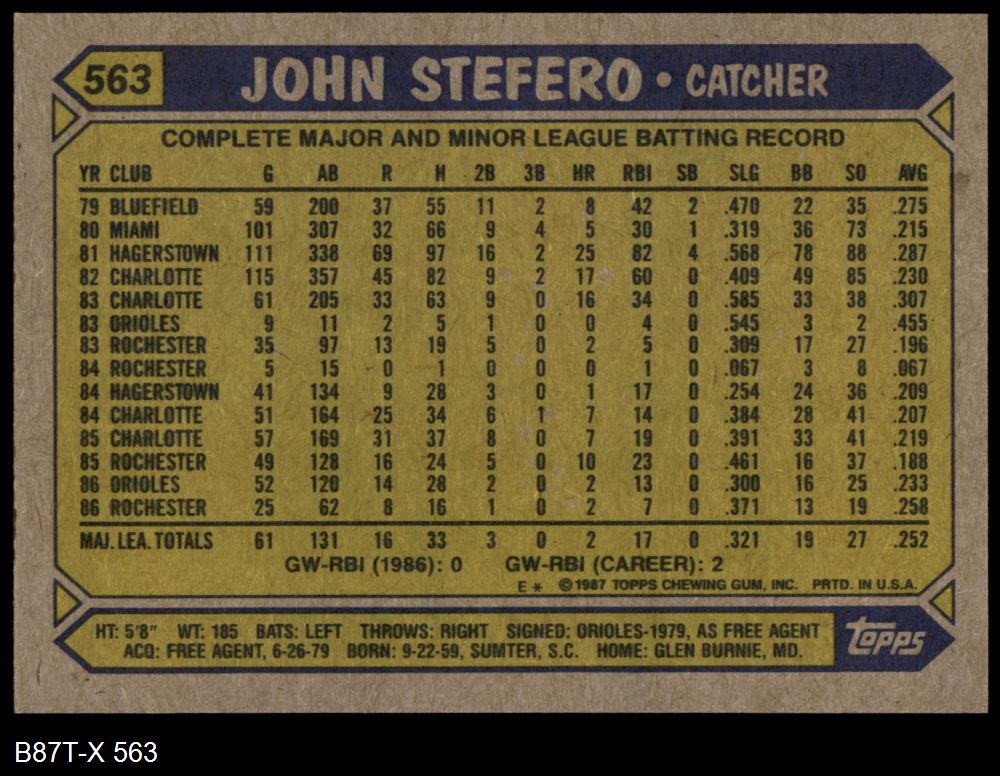 1987 Topps #563 John Stefero