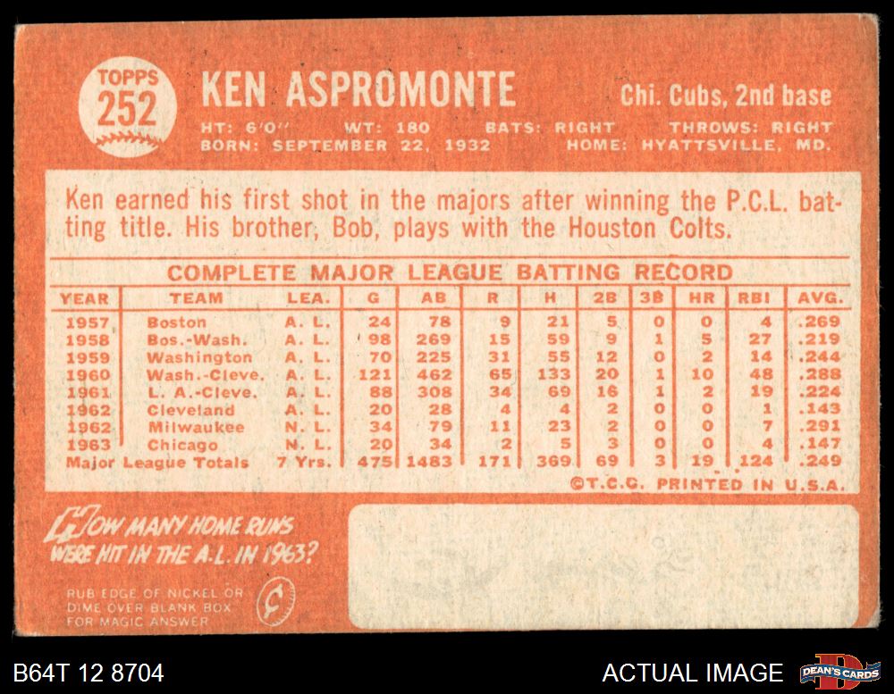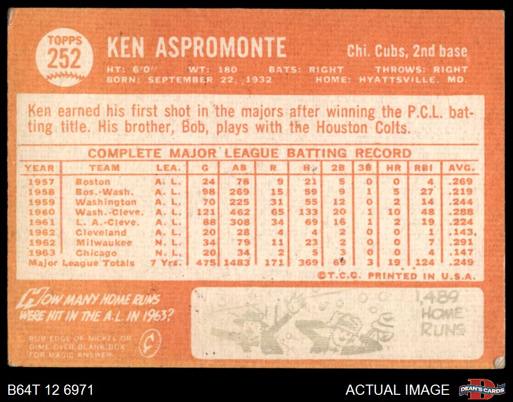 1964 Topps #252 Ken Aspromonte 3 - VG