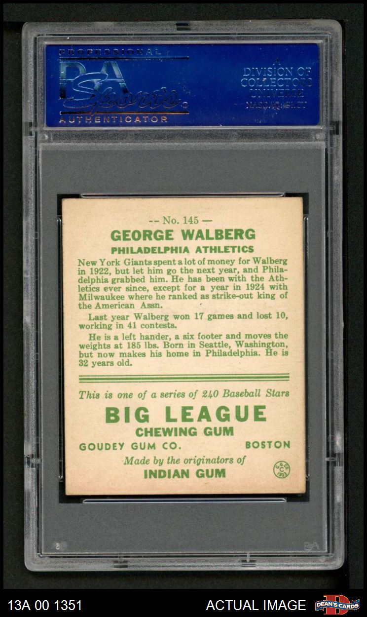 1933 Goudey #145 Rube Walberg PSA 3.5 - VG+