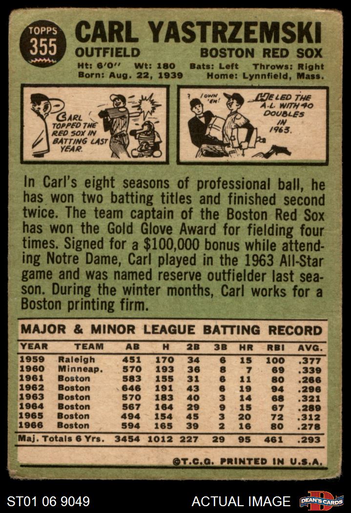 1967 Topps #355 Carl Yastrzemski AUTHENTIC