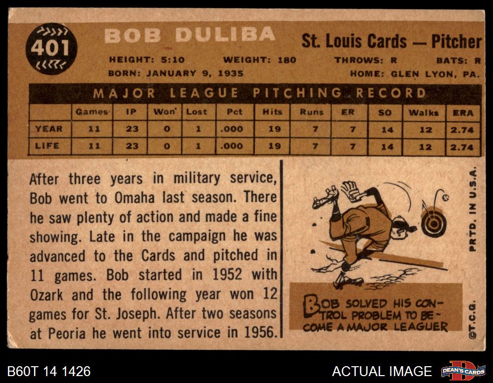 1960 Topps #401 Bob Duliba Front Thumbnail
