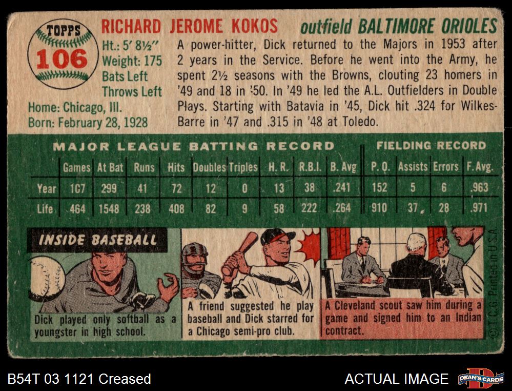 1954 Topps #106 Dick Kokos 1.5 - FAIR