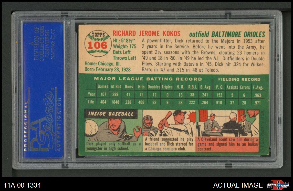 1954 Topps #106 Dick Kokos PSA 7 - NM