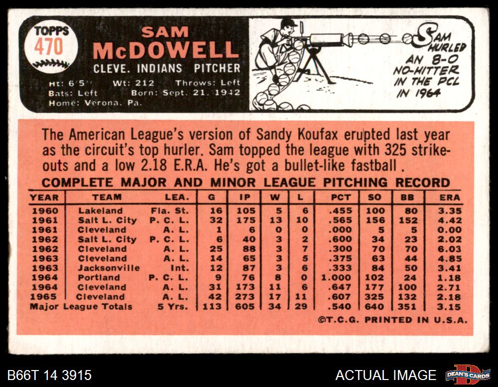 1966 Topps #470 Sam McDowell 2 - GOOD