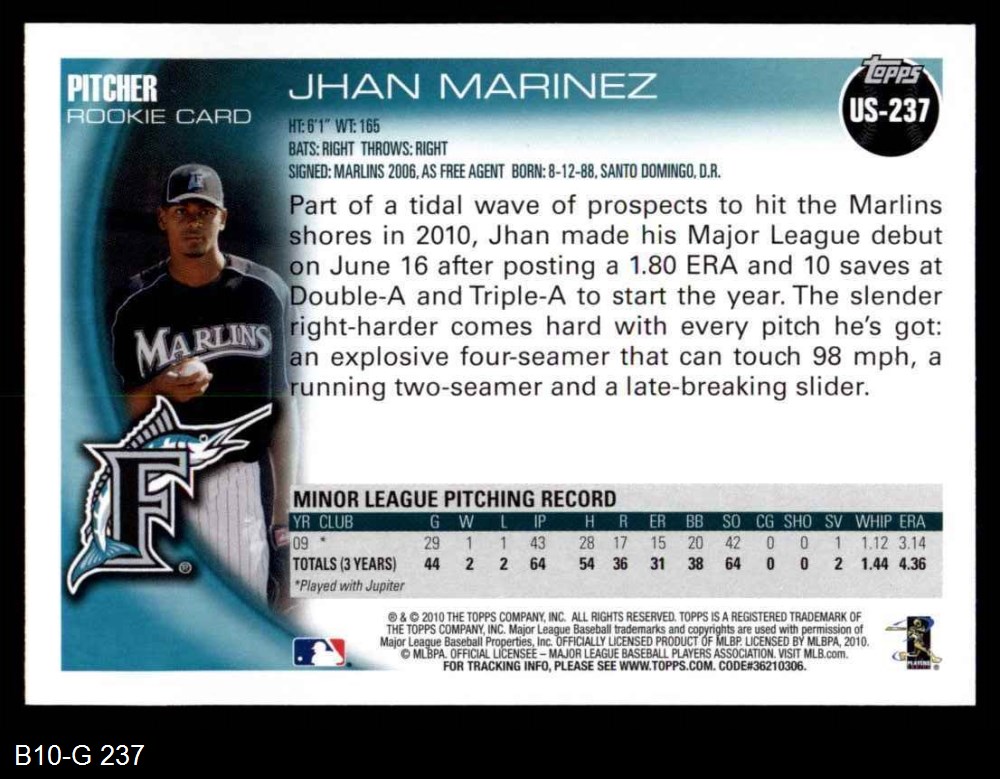 2010 Topps Update #237 Jhan Marinez 8 - NM/MT