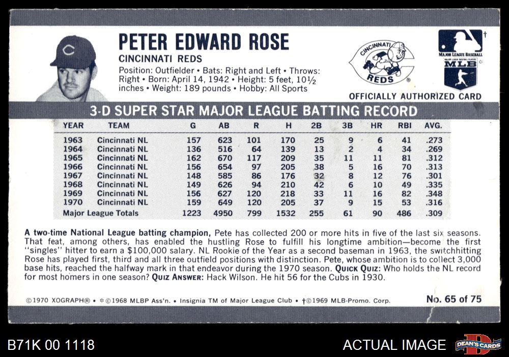 1971 Kellogg's #65 Pete Rose 3 - VG