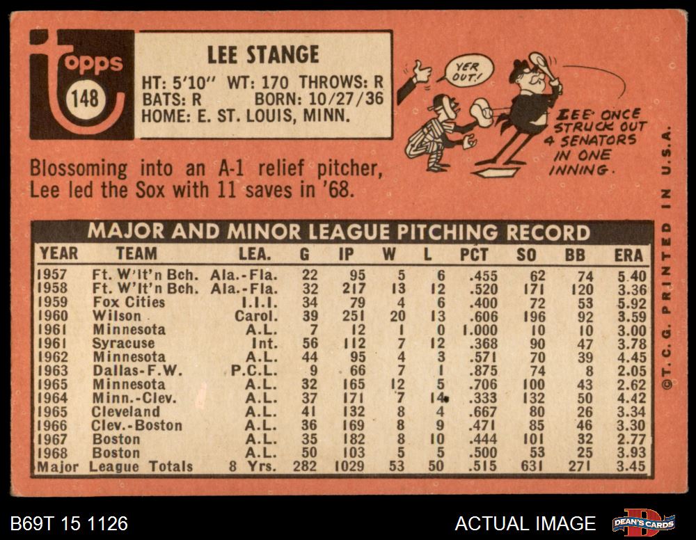 1969 Topps #148 Lee Stange