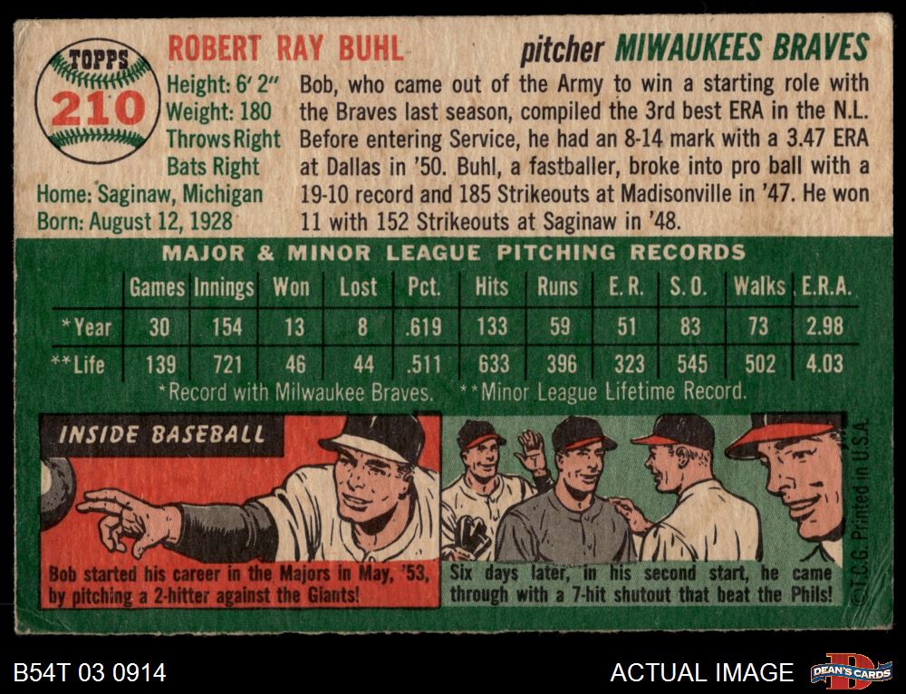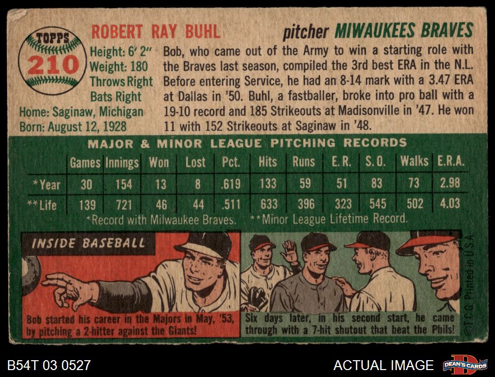 1954 Topps #210 Bob Buhl