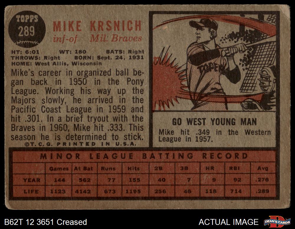 1962 Topps #289 Mike Krsnich 1 - POOR