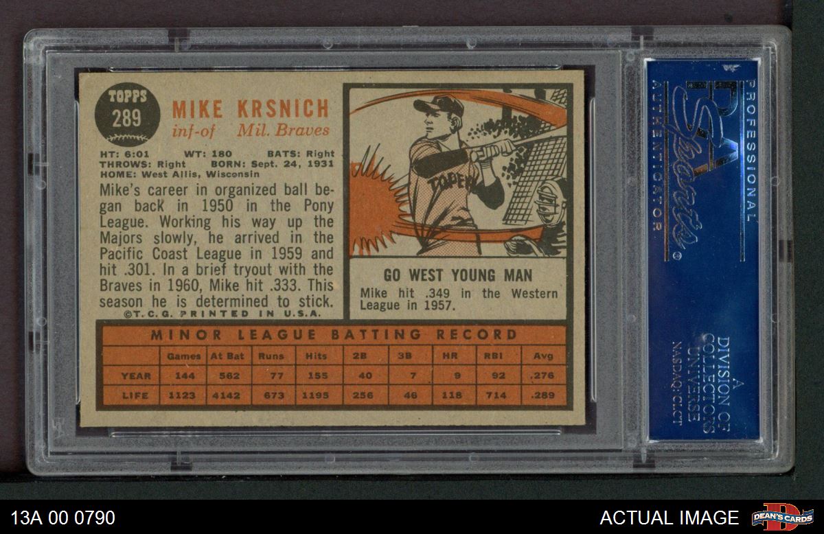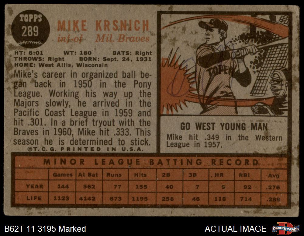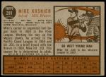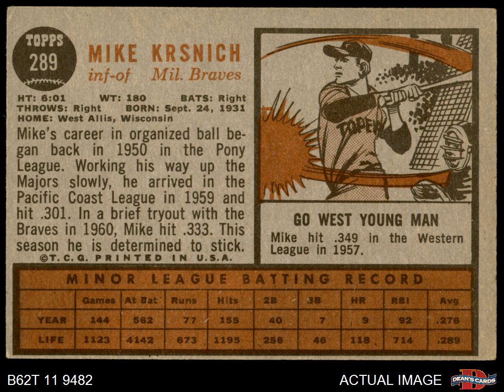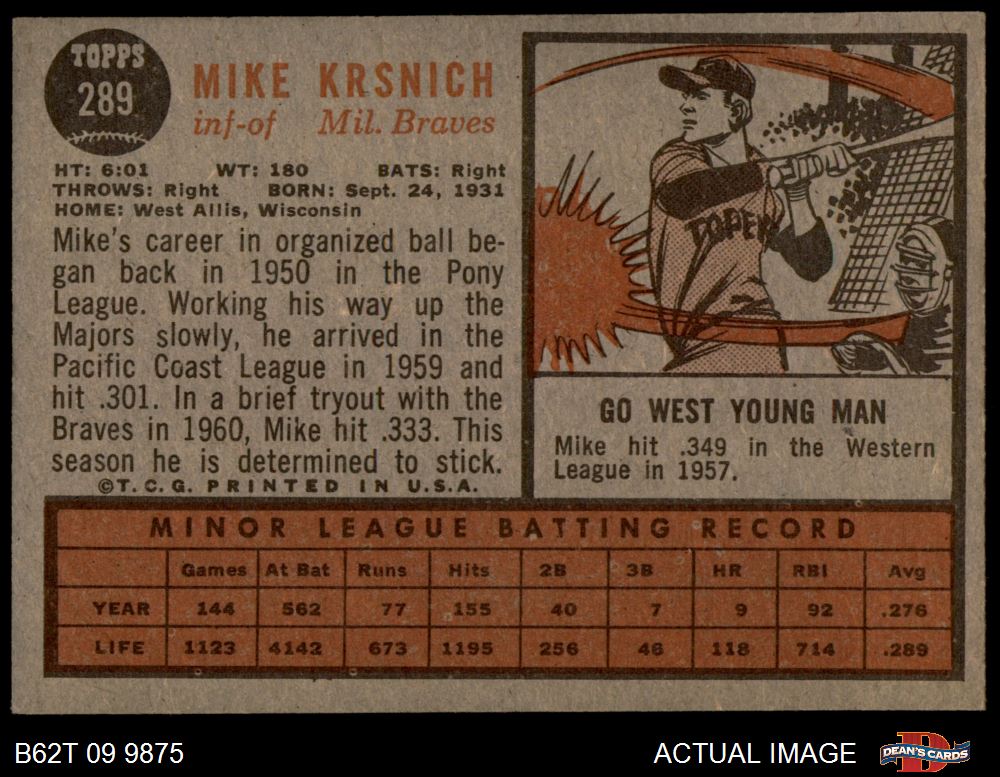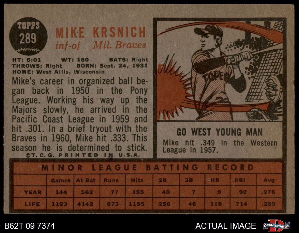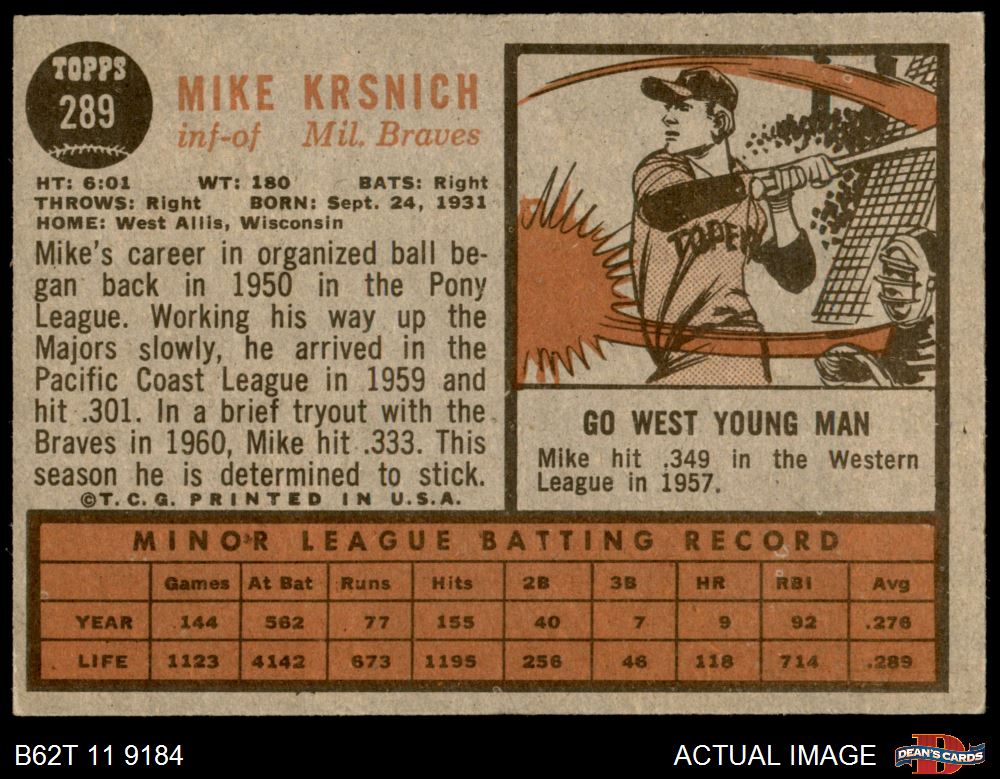 1962 Topps #289 Mike Krsnich