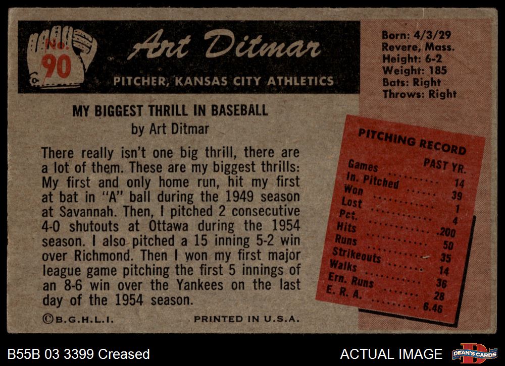 1955 Bowman #90 Art Ditmar