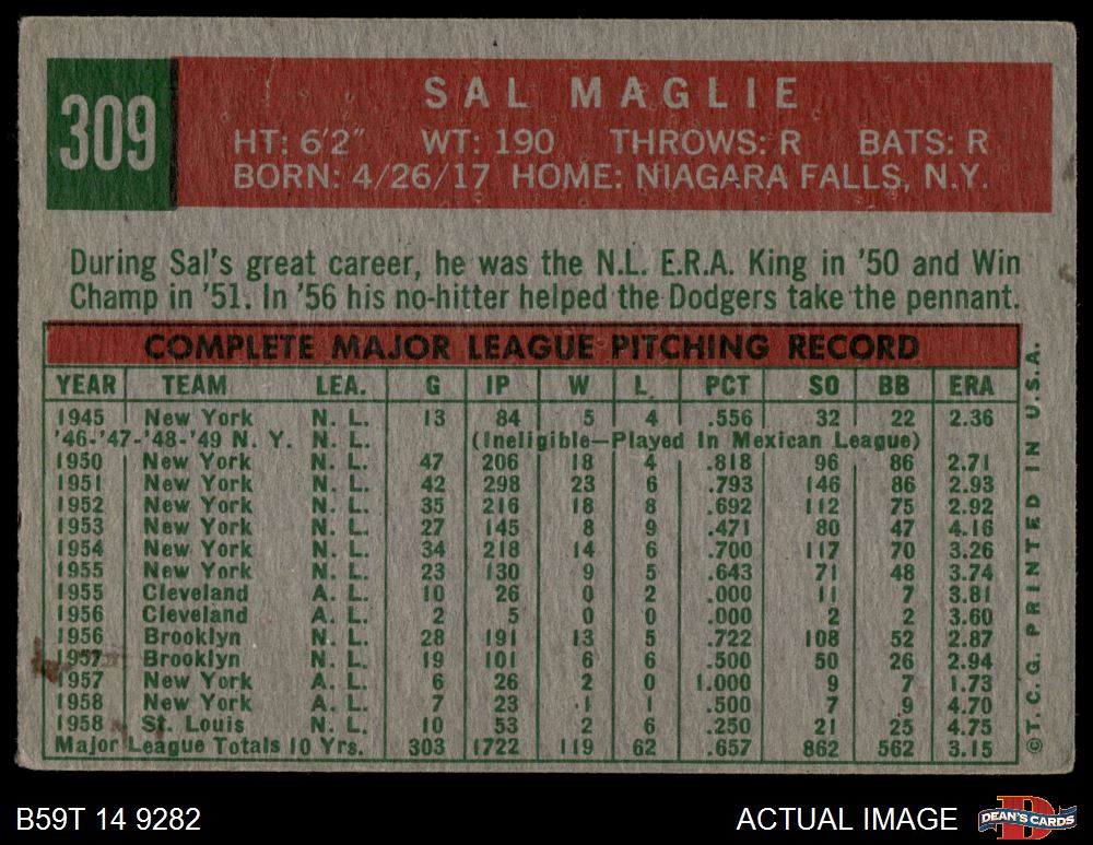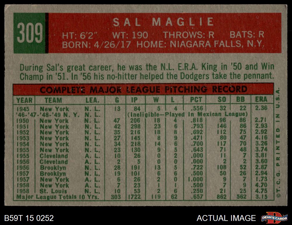 1959 Topps #309 Sal Maglie 2 - GOOD