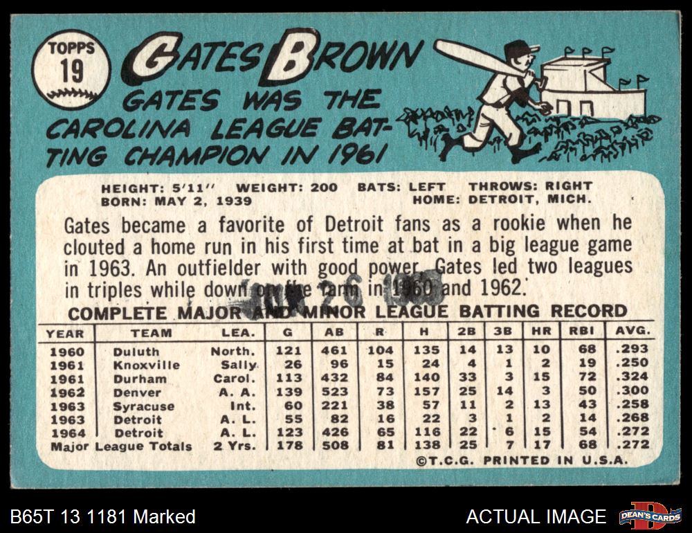 1965 Topps #19 Gates Brown 1.5 - FAIR