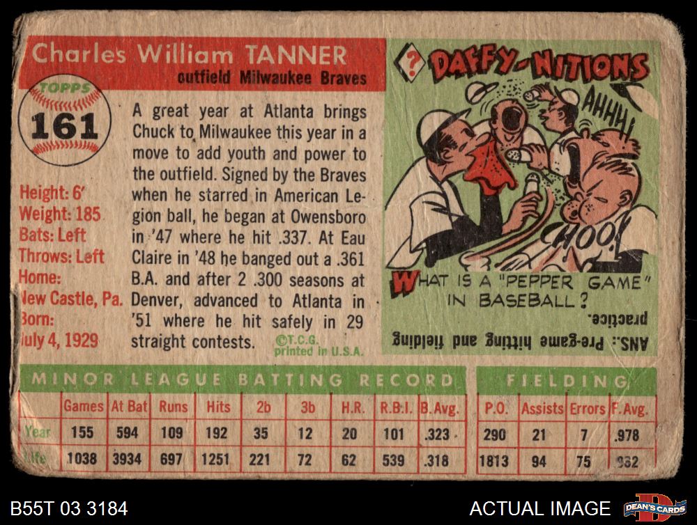 1955 Topps #161 Chuck Tanner AUTHENTIC