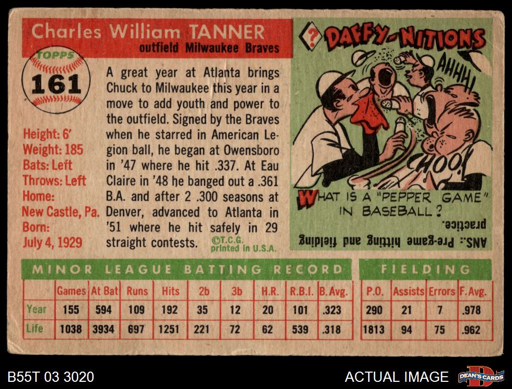 1955 Topps #161 Chuck Tanner 2.5 - GD+