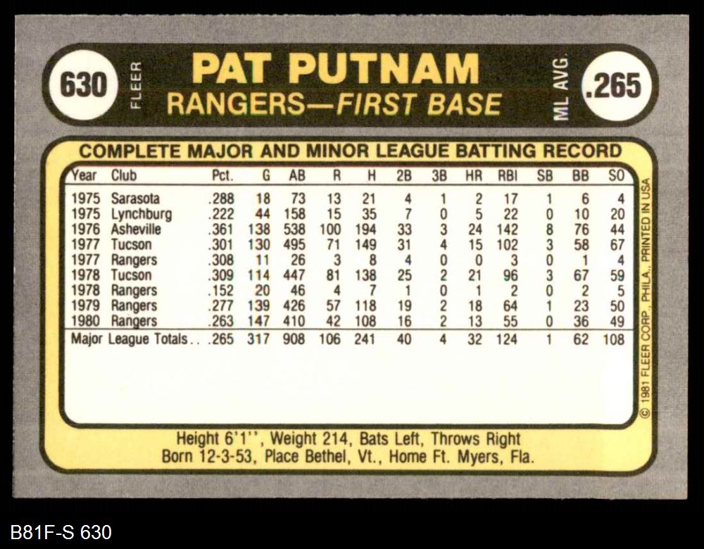 1981 Fleer #630 Pat Putnam 8 - NM/MT