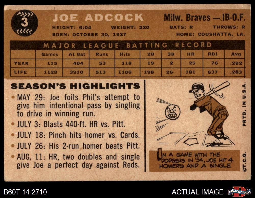1960 Topps #3 Joe Adcock 2.5 - GD+
