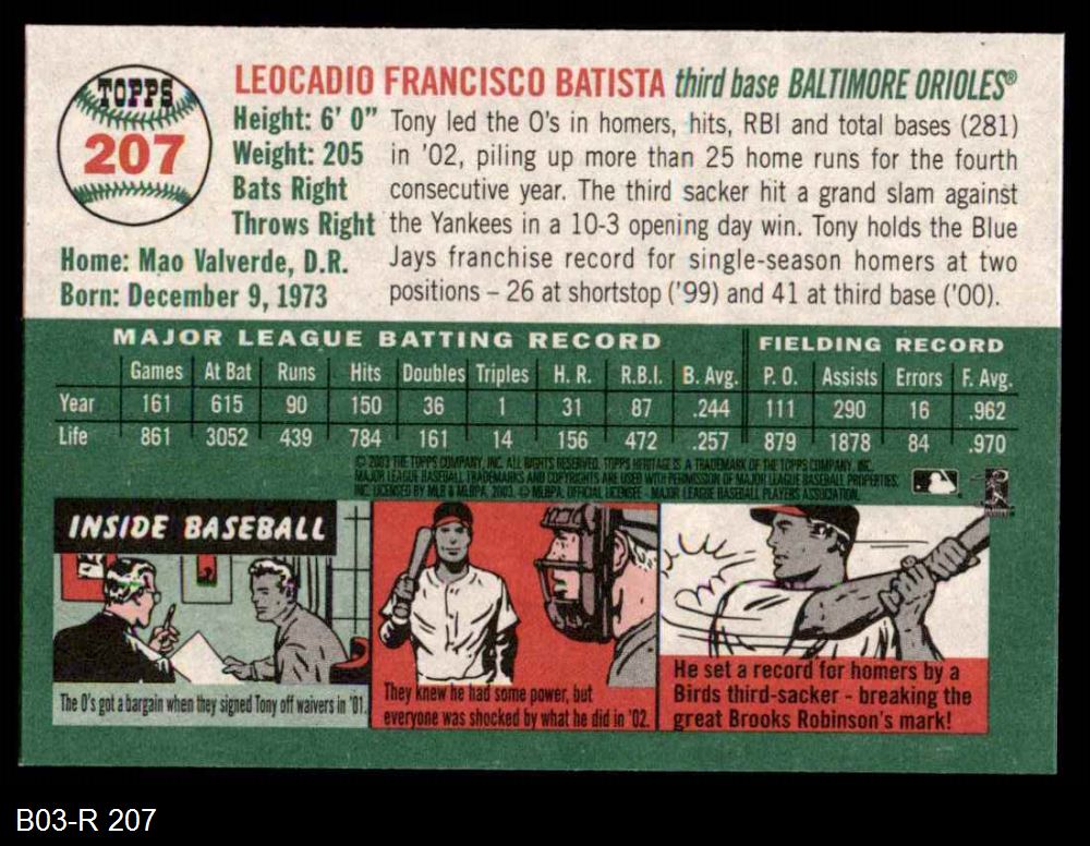 2003 Topps Heritage Baseball Cards (1,014 available)2003 Topps Heritage Orioles (33 available)