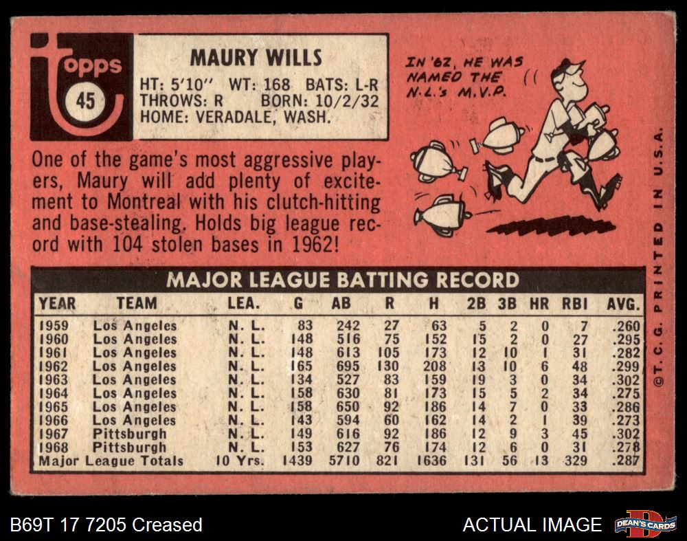 1969 Topps #45 Maury Wills 2 - GOOD