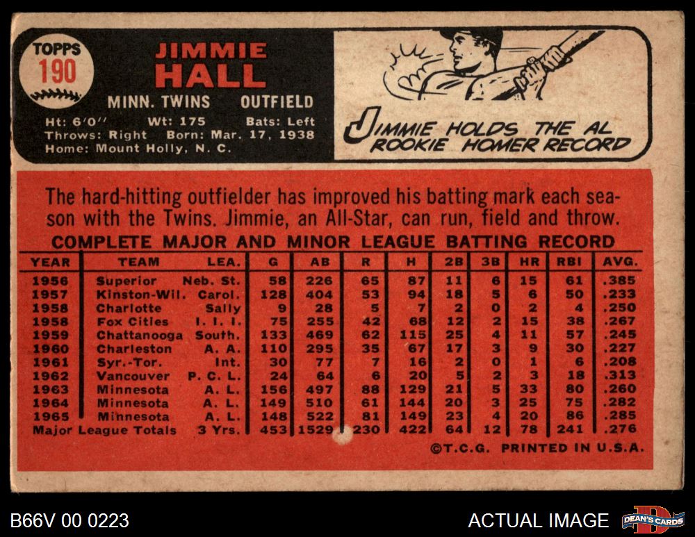 1966 Topps Venezuelan #190 Jimmie Hall 4 - VG/EX