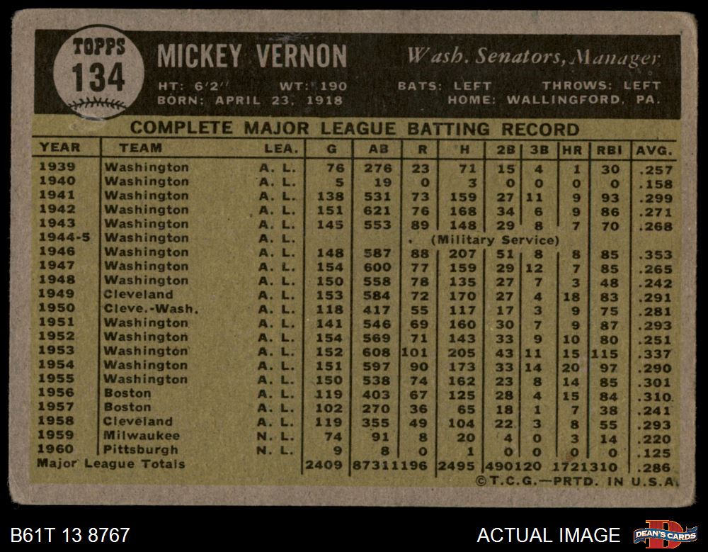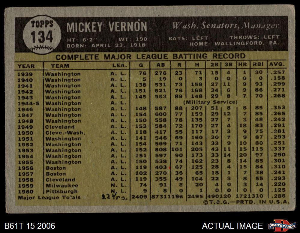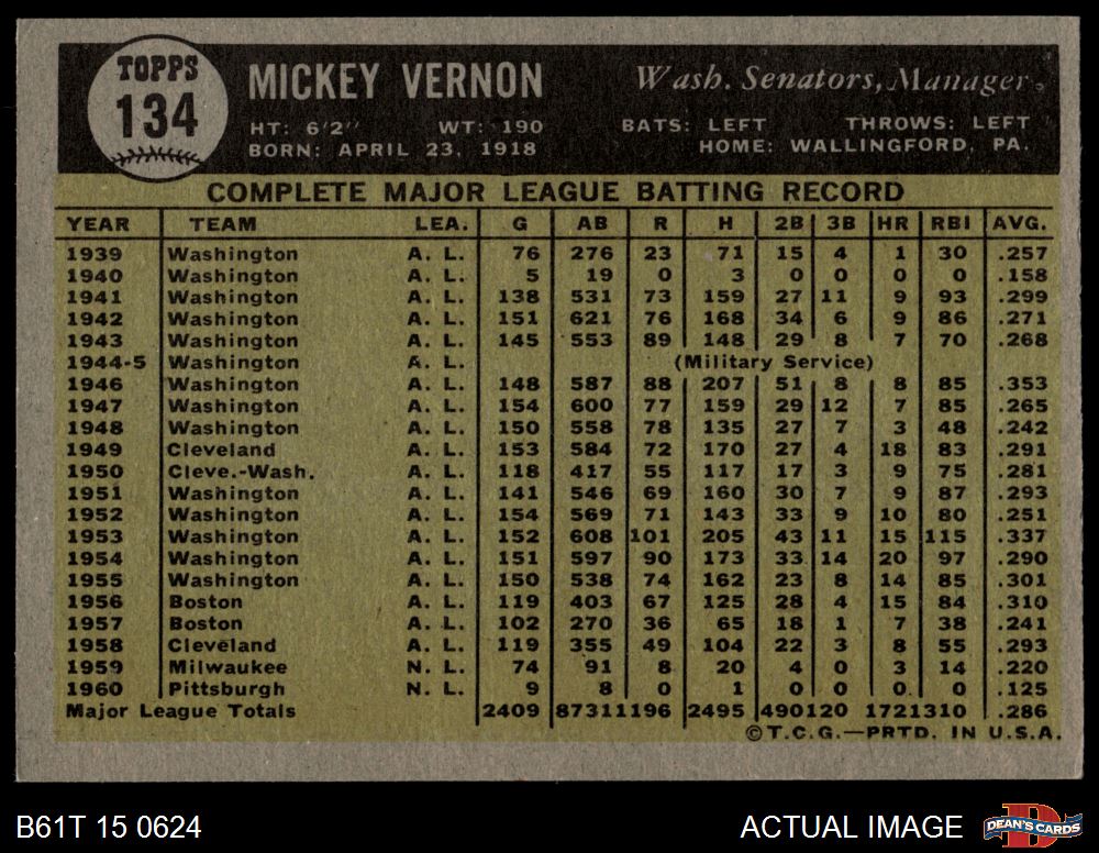 1961 Topps Baseball Cards (10,000 available)1961 Topps Senators (624 available)